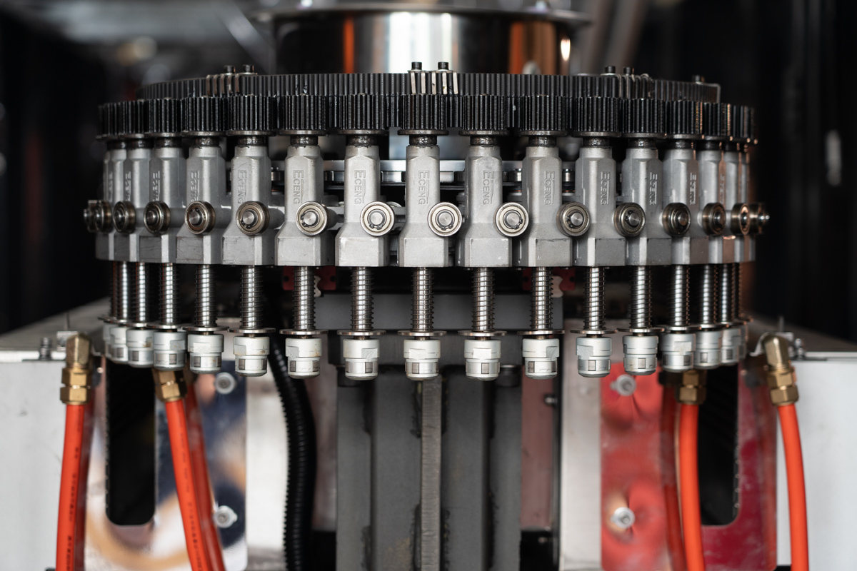 Linear bottle blowing machine is used in the production of PET water bottles,hot filling bottles,carbonated beverage bottles and edible oil bottles.Eceng Machinery K series linear bottle blowing machine stretches the preform by controlling the stretching rod by servo motor. The advantage is that it can be stretched in sections, firstly position the preform,ensure the verticality of the preform when stretching then secondary stretching.Ensure uniformity and consistency of stretch of each preform. At the same time, the blower is faster and less energy consumed.