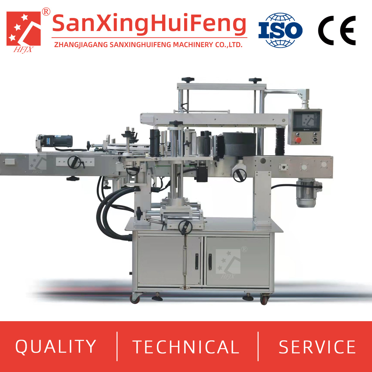 Economical and easy to operate, double-sided self-adhesive labeling machine with HMI touch screen and PLC control system. Built-in microchip allows quick and easy adjustments and changeovers. This automatic labeling system is ideal for flat and square containers.