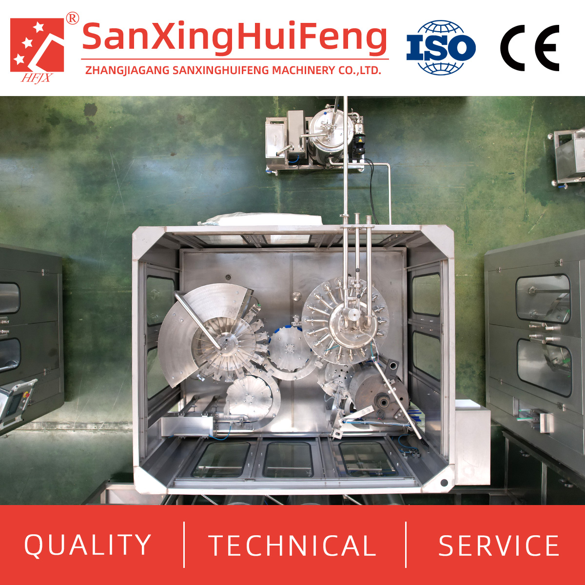 7. Washing: The bottle passes through the bottle washing machine to fully clean the dust and dirt that may exist in the bottle. In order to ensure the cleaning effect, the pure water pressure required for cleaning is not less than 0.4MPa. Bottle cleaning is often combined with filling and capping to form a “three-in-one” filling machine.