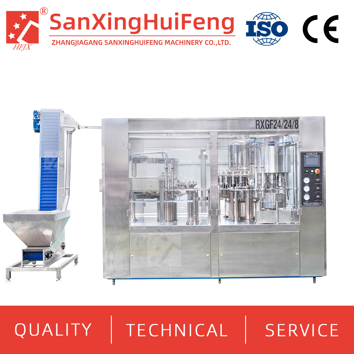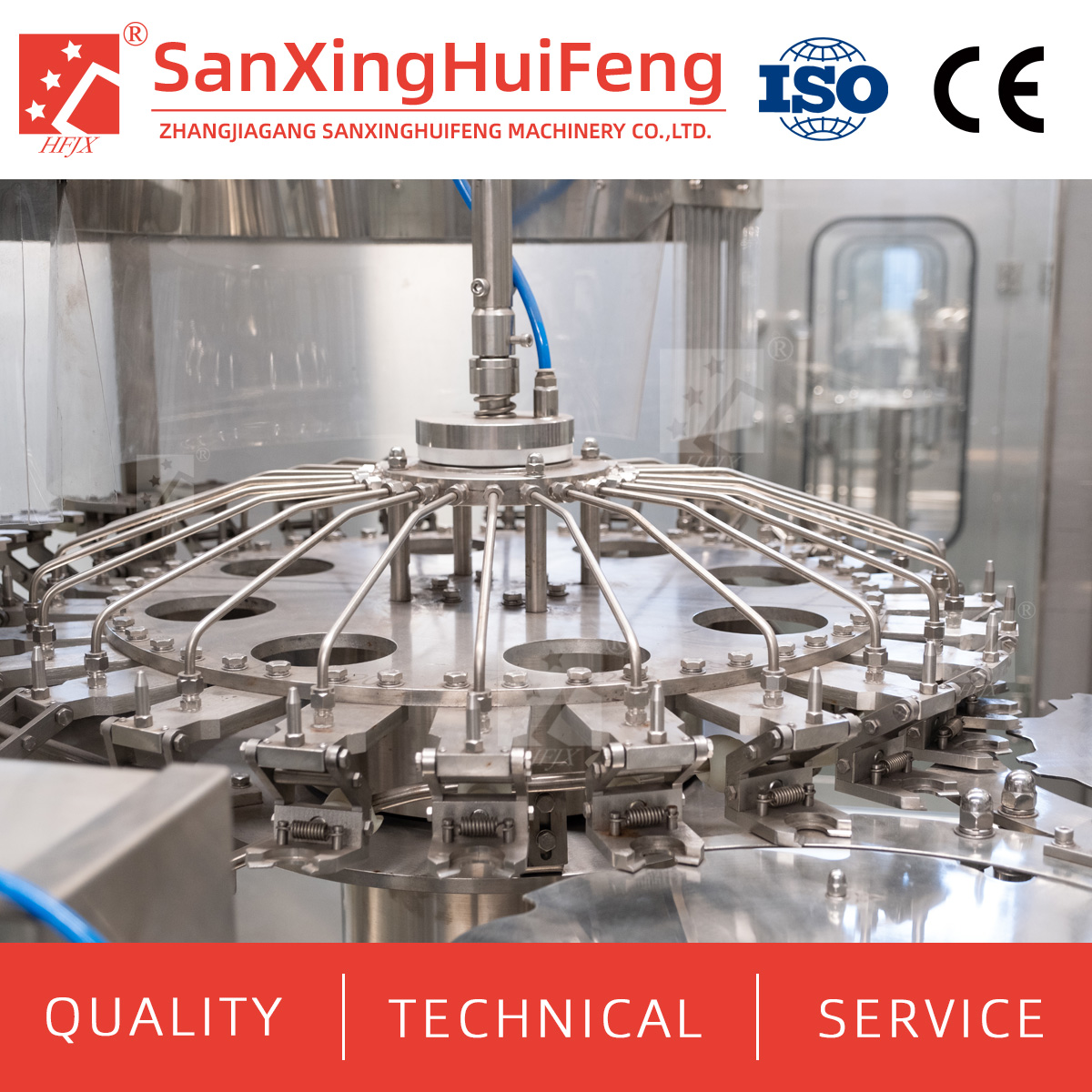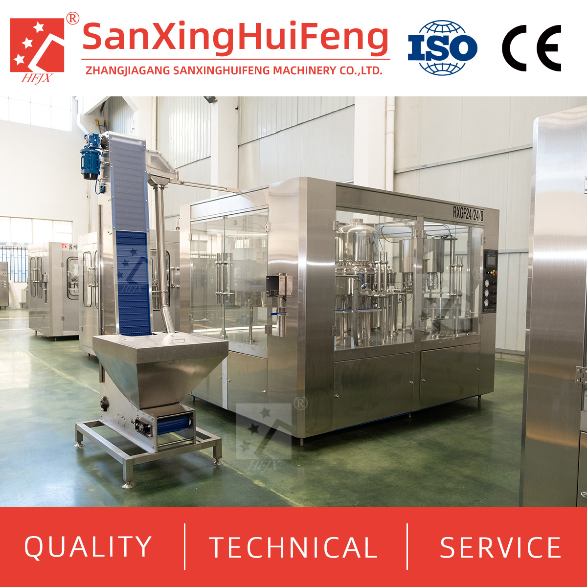 HFJX offers high quality automatic bottle filling equipments with 2000-20000 bph for juice production line. We even provide 4 in 1 liquid filling machine to bottle pulpy juices, or juices that require a hot-filling process. The four functions of bottle rinsing,pulp filling and juice filling and capping are composed in one body of the machine. The whole process is automatic. The handle of the machine can be freely and conveniently turned to adjust the machine to fill various types of bottles.